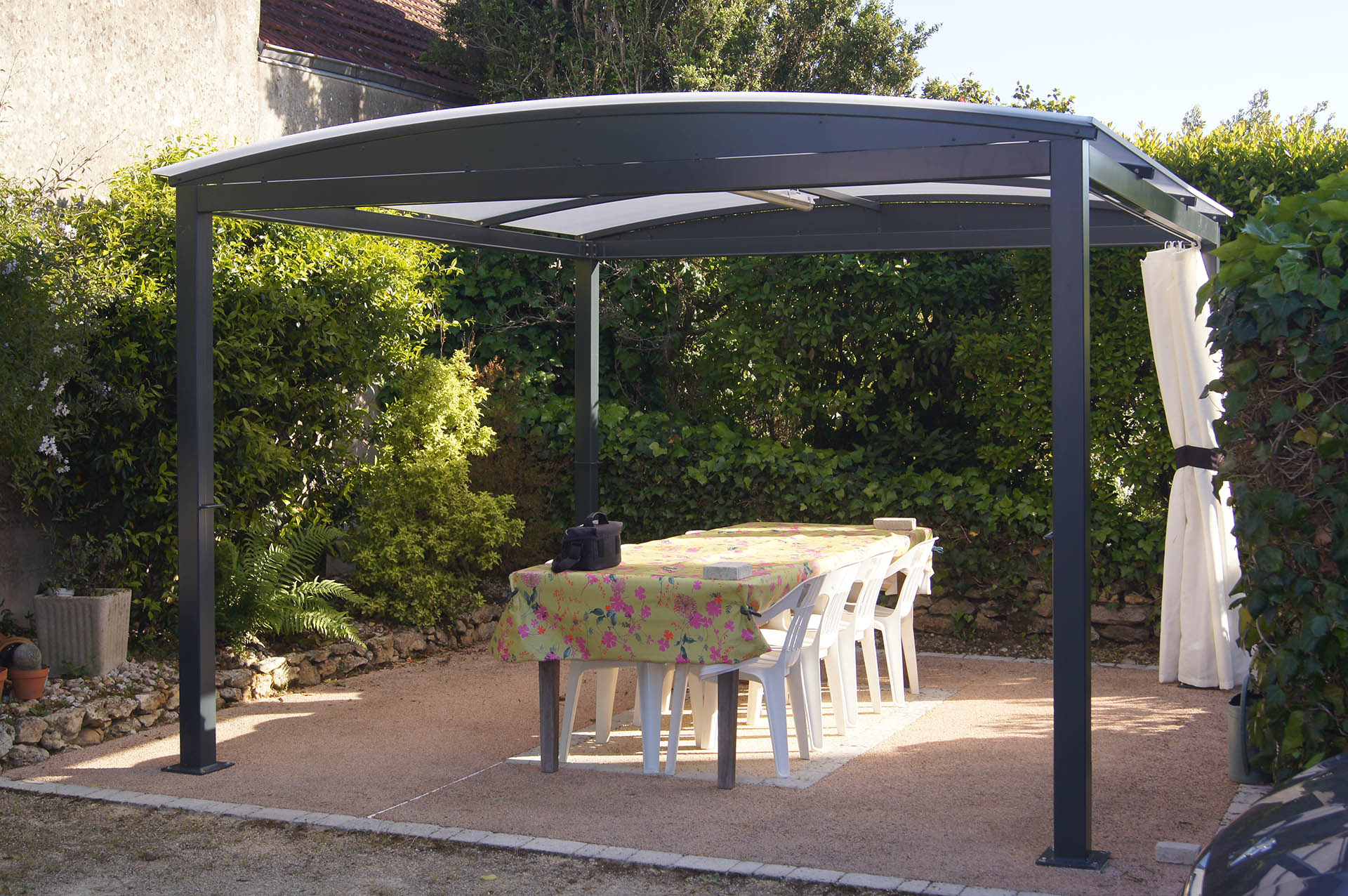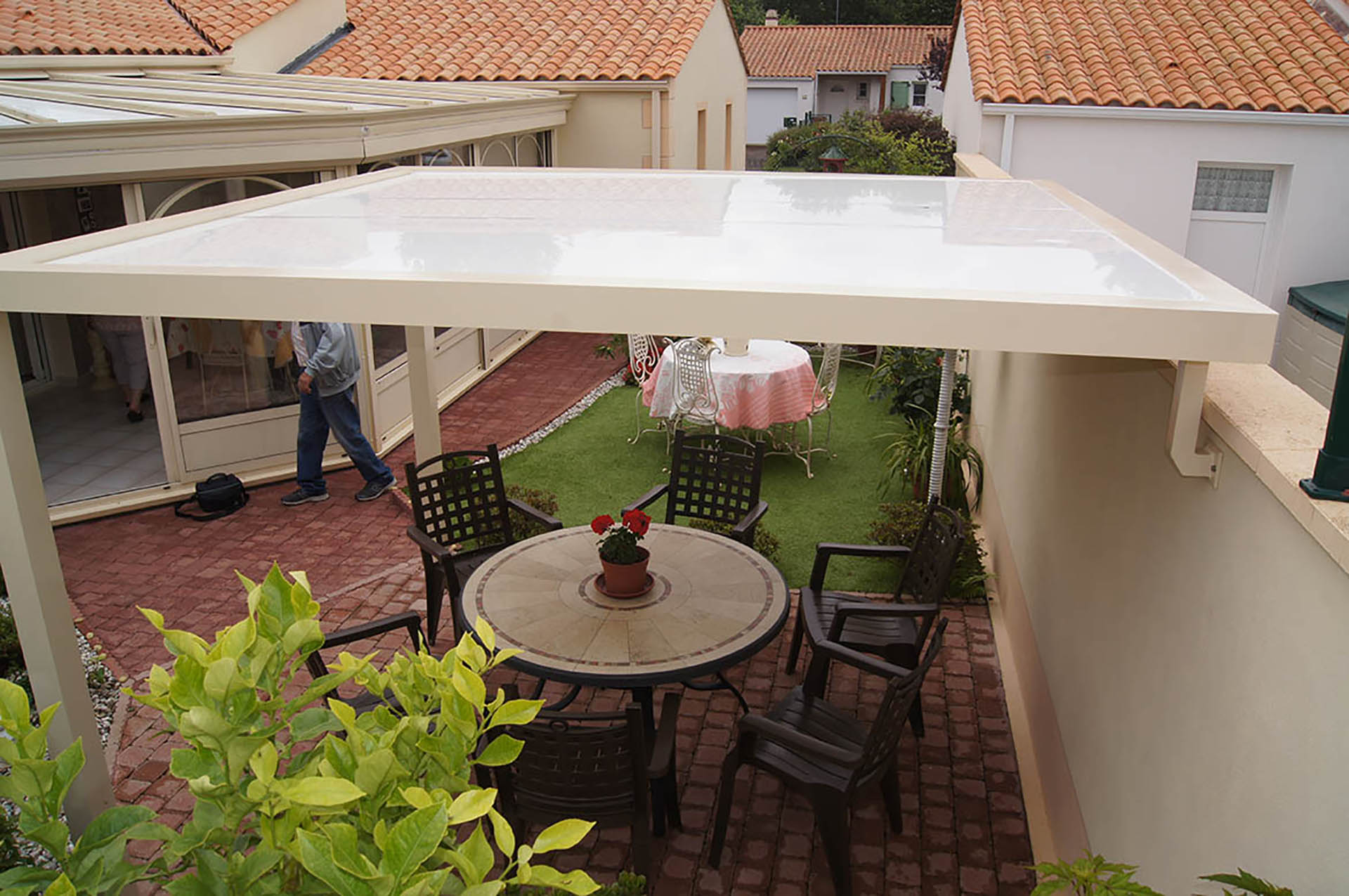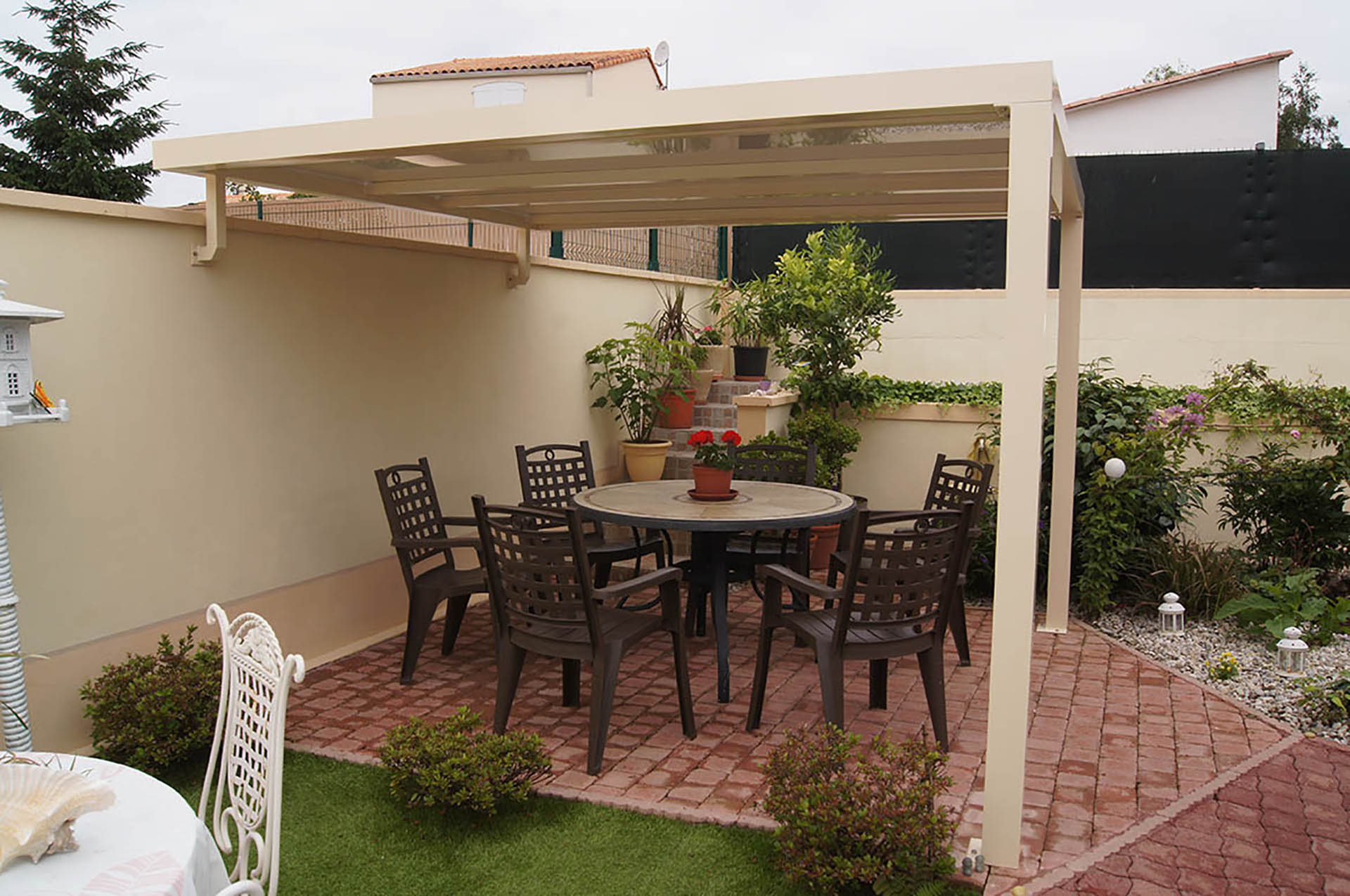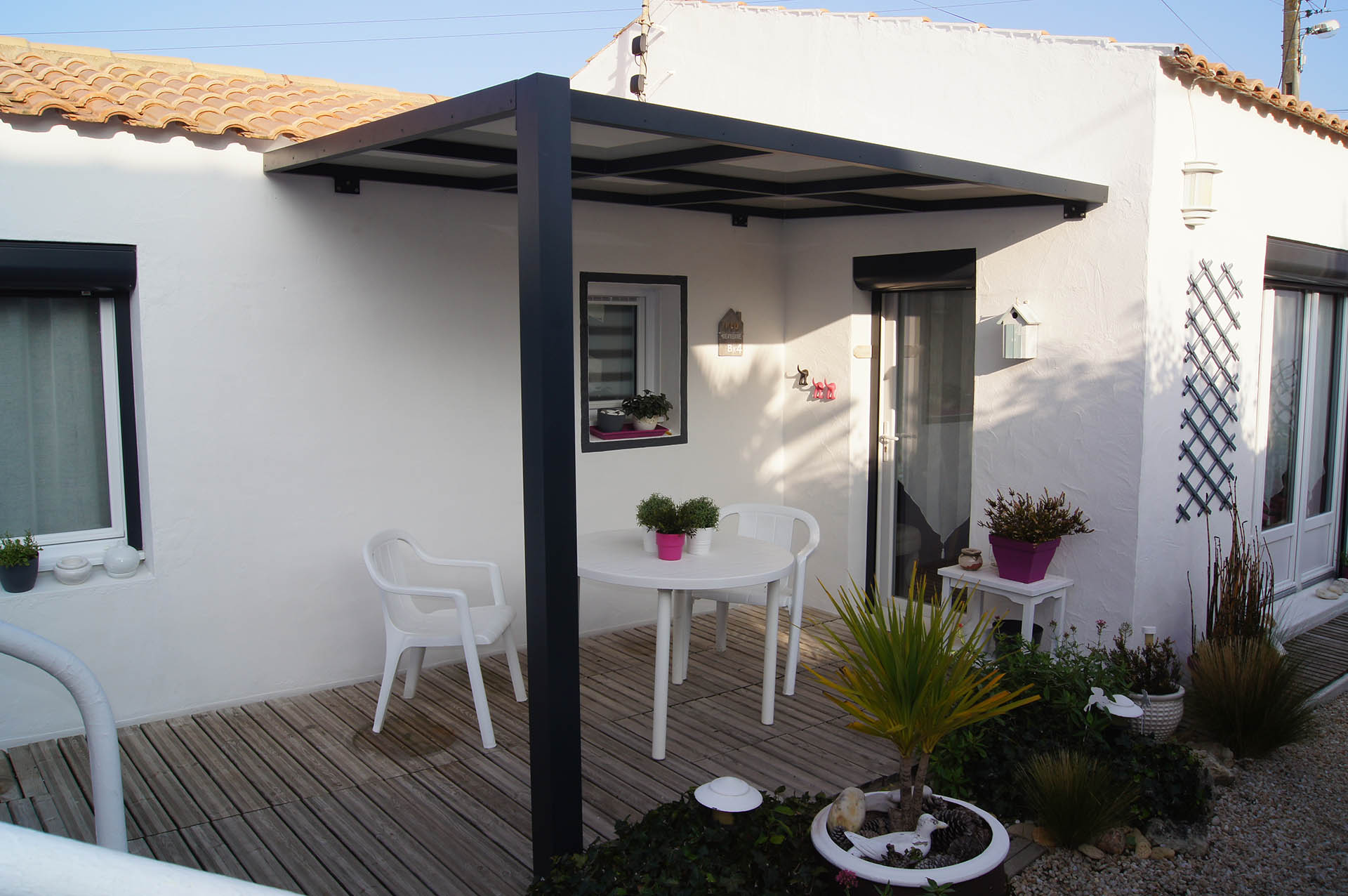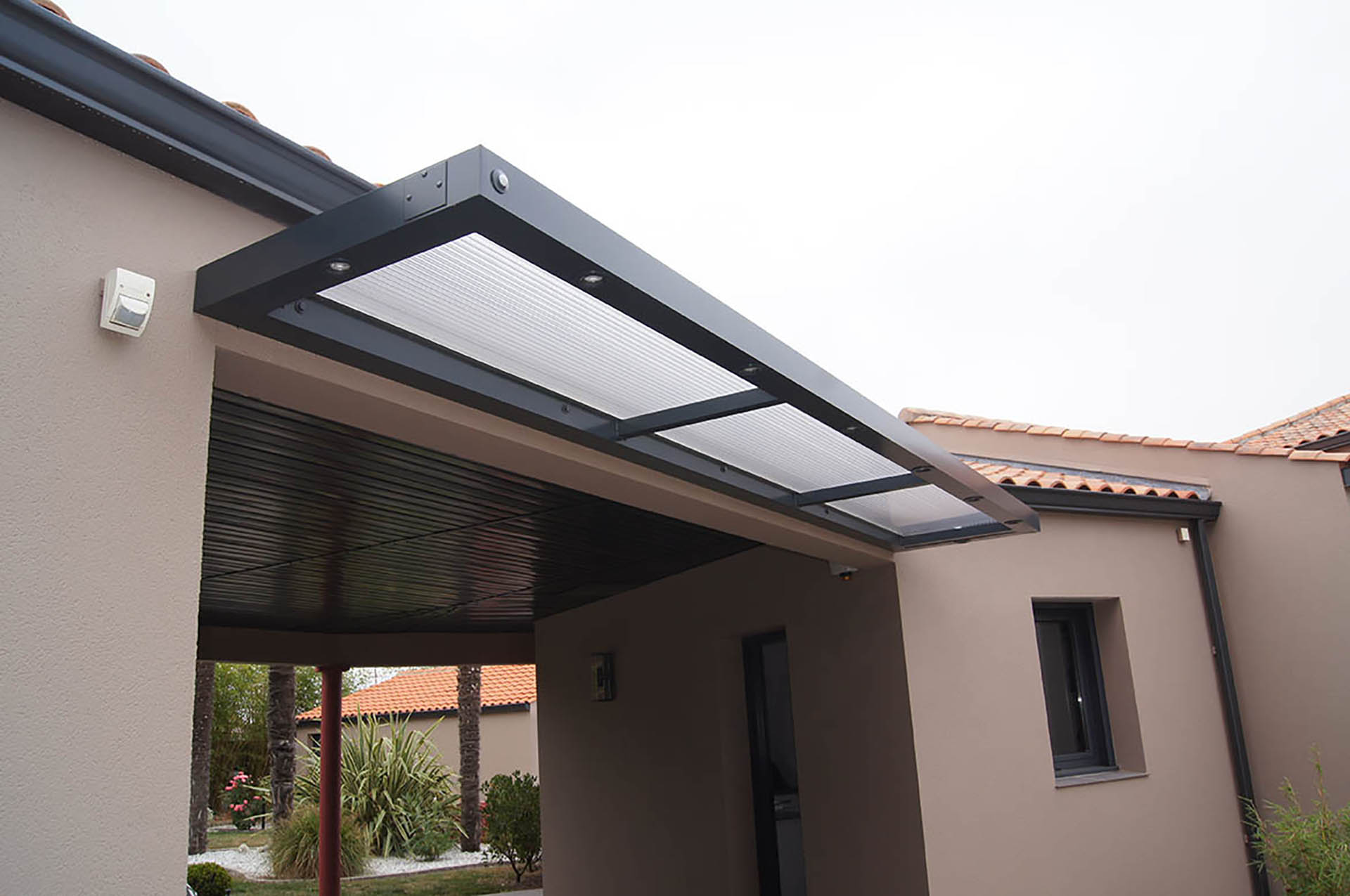 Nous proposons également des abris sous forme de pergola, pour votre terrasse ou votre jardin ou des casquettes aluminium pour vos entrées.